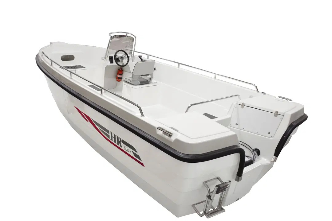 HR 600 Fishing har dobbeltskrog og hel innerliner. Dette gjør HR 600 Fishing renere og finere enn de vanligste konkurrentene! HR 600 Fishing er veldig dyp og trygg og er selvsagt selvlensende. Båten har to utløp akter i dørken. HR 600 Fishing har større plass; 2,40 m bredde - noe som er ca 10 cm bredere enn andre "fiskebåter". Standardutstyr: Båten har langsgående rekker i syrefast stål langs store deler av skrogsidene, syrefast Pulpit og rekke i baugen, vindskjerm og stålbøyle rundt vindskjerm, kjøljern i baugen og lanterner er standard! (Rød og grønn separert i baugen, innfelt i dekk, samt hvit rundtlysende på stang akter.) HR 600 Fishing har to forsterkninger/fester for garn/teinehalere. En på hver side fremme. HR 600 Fishing har godt med tørre stuerom. Tilleggsutstyr: Fast bensintank kan leveres som opsjon.
