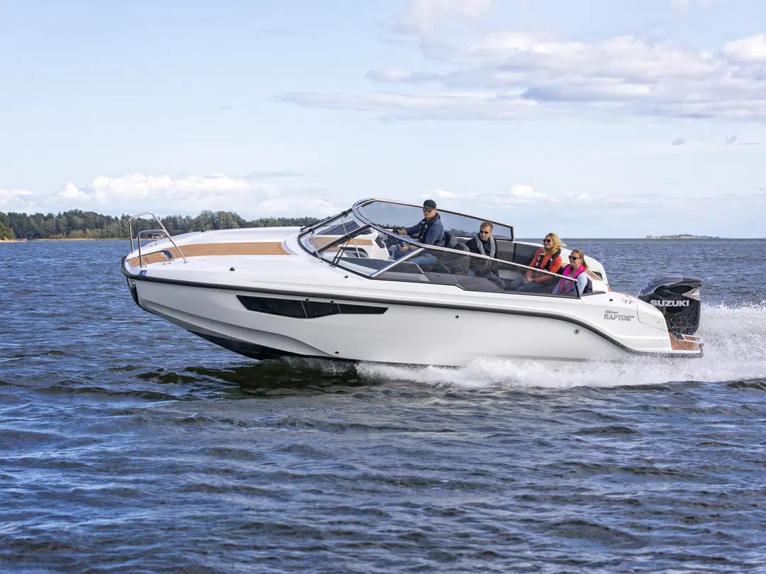 Silver Raptor, den største Day Cruiser-modellen fra Silver, er en imponerende 8,05 meter lang båt med plass til hele familien og venner. Med sengeplass til minst seks personer, et godt utstyrt pantry og et separat sjøvannstoalett, tilbyr den komfortable turer til sjøs. Designet av det anerkjente norske designbyrået Eker Design AS, har Raptor en moderne skandinavisk stil og brukervennlige materialer. Den patenterte Petestep®-teknologien sikrer jevn og stabil kjøring, mens det romslige cockpitet og den store U-formede sofaen gjør det til et ideelt sted for sosialt samvær. Med et omfattende standardutstyr, inkludert Raymarine Axiom-skjerm, baugpropell og trykkvannsystem, tilbyr Silver Raptor en førsteklasses båtopplevelse. Med ekstrautstyr som gardinsett, havnekalesje og solcellepaneler, kan den tilpasses etter individuelle behov og preferanser.
